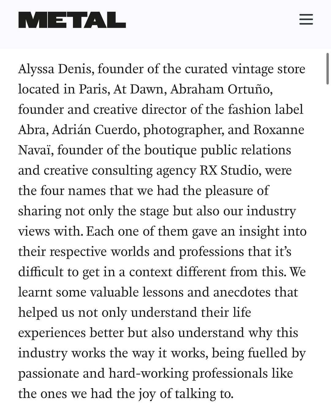 Other industry experts also contributed to METAL’s panels, sharing insights on creativity, artisanal techniques,